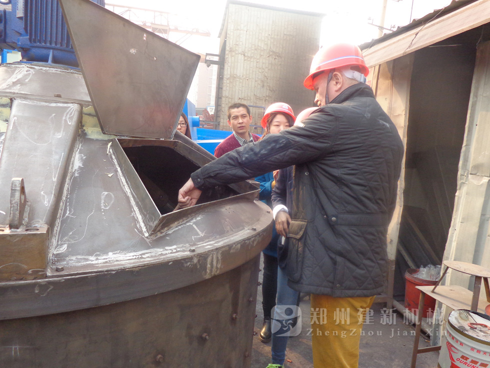 2014年11月,來自俄羅斯的客戶來到鄭州建新公司簽訂了兩套時產(chǎn)120方混凝土攪拌站設備的大訂單,下圖為建新公司銷售部劉經(jīng)理、經(jīng)理帶客戶參觀建新公司的生產(chǎn)車間及成品貨場。